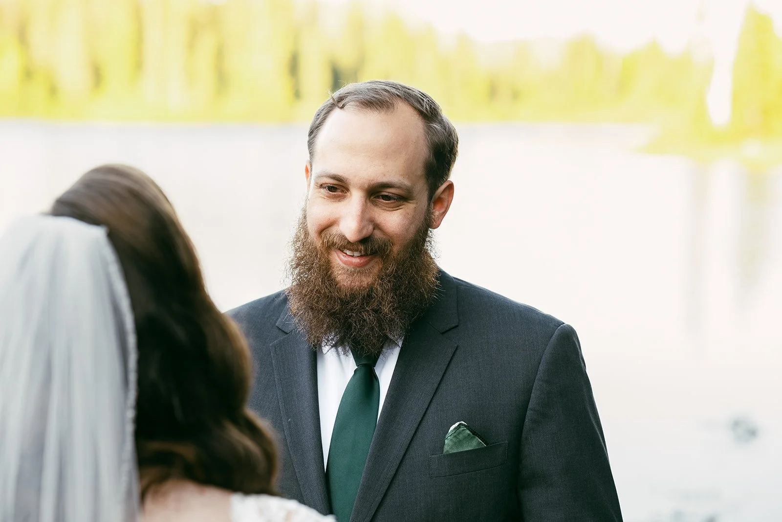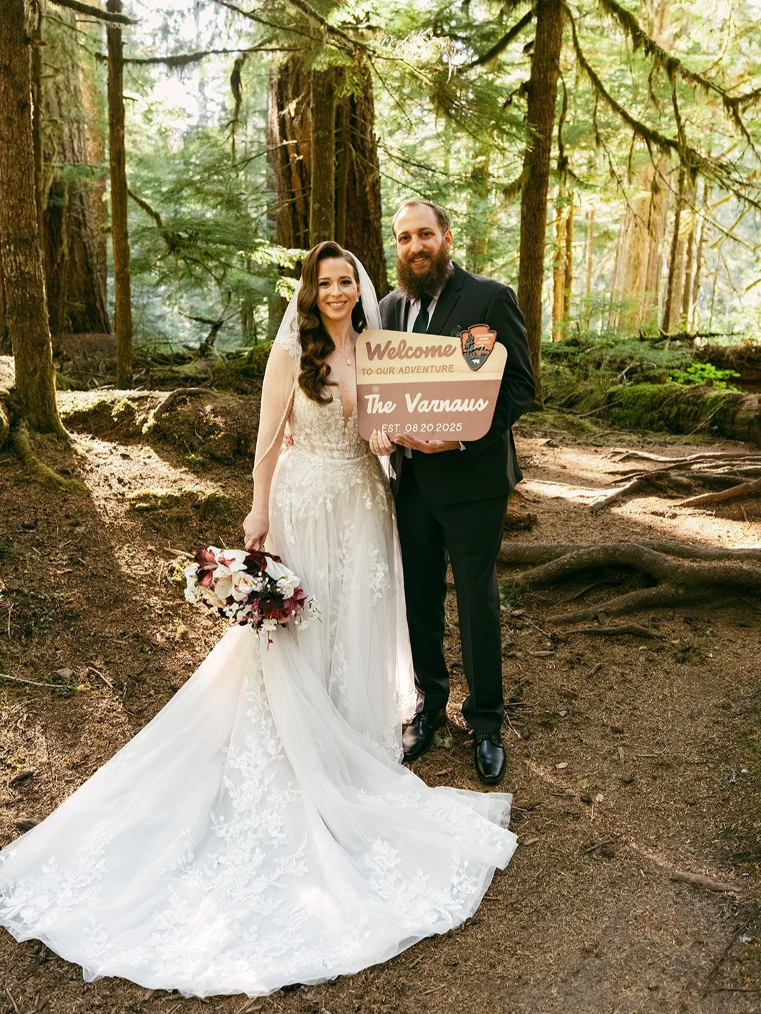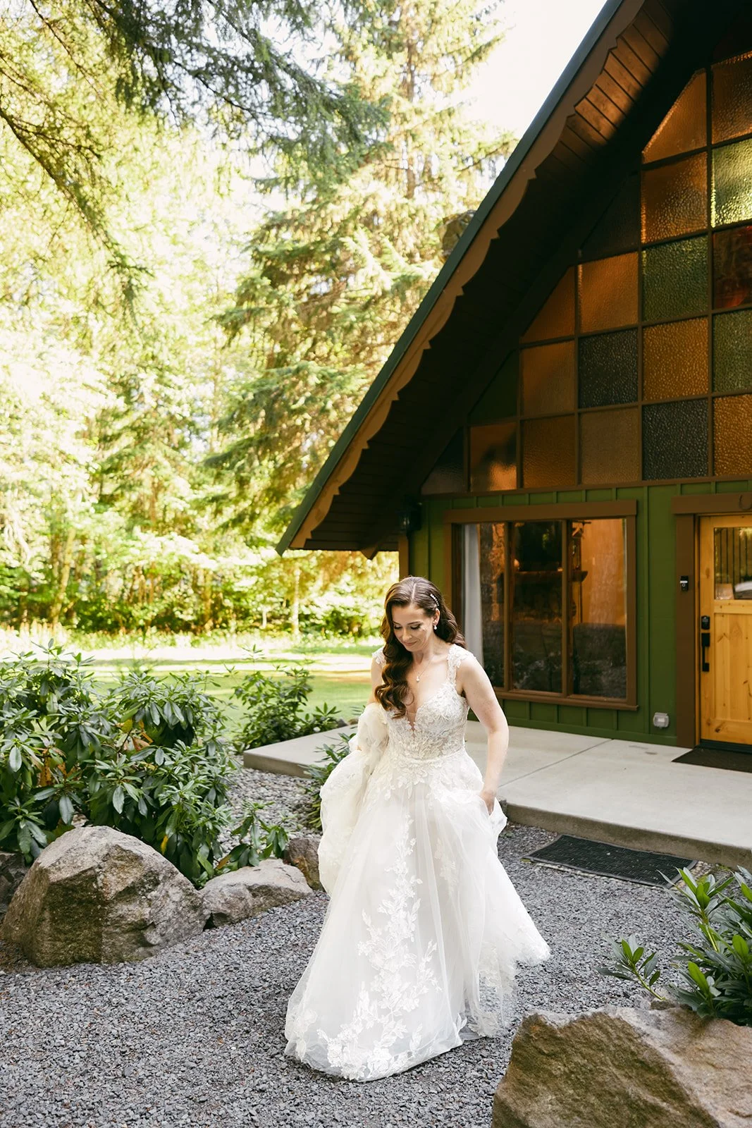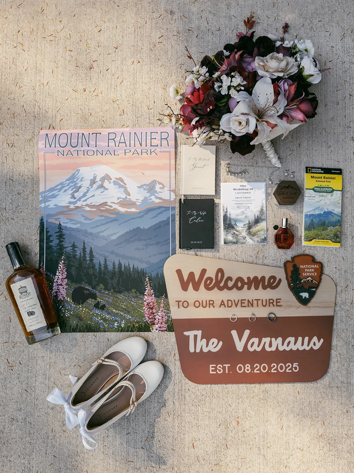 Keep scrolling for images from this beautiful day—from starting at an Airbnb in Ashford, WA, to a first look in the forest, to a ceremony at Reflection Lakes, and finally a sunset hike along the Skyline Trail to Myrtle Falls.