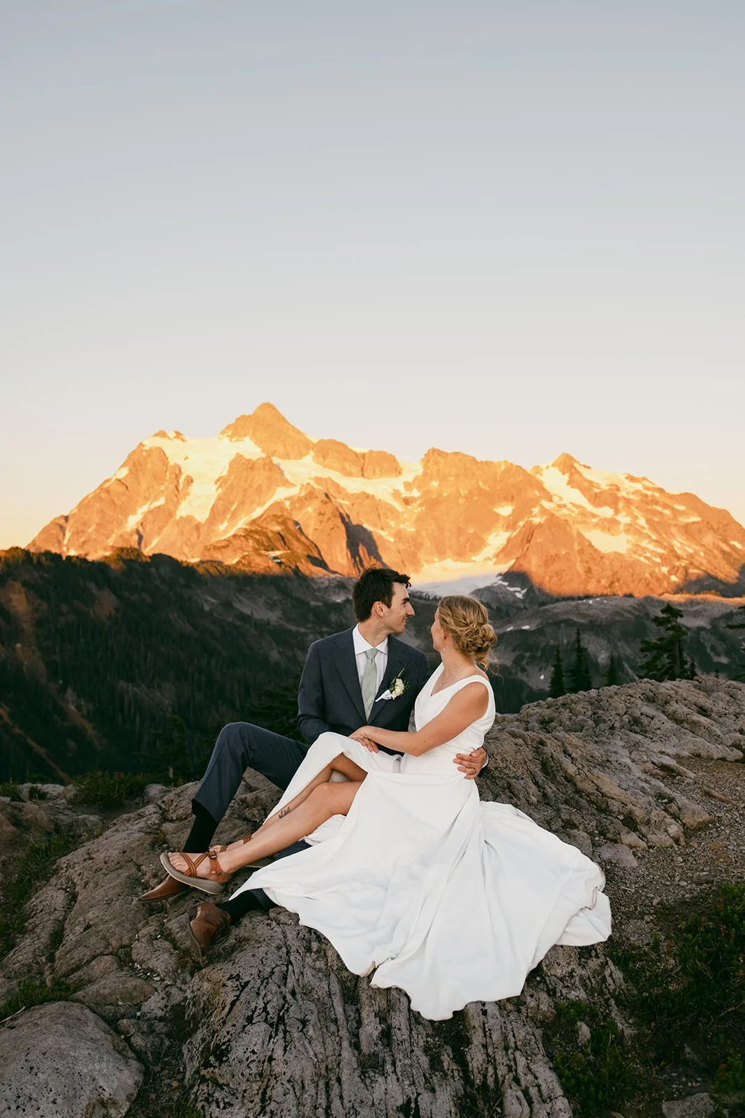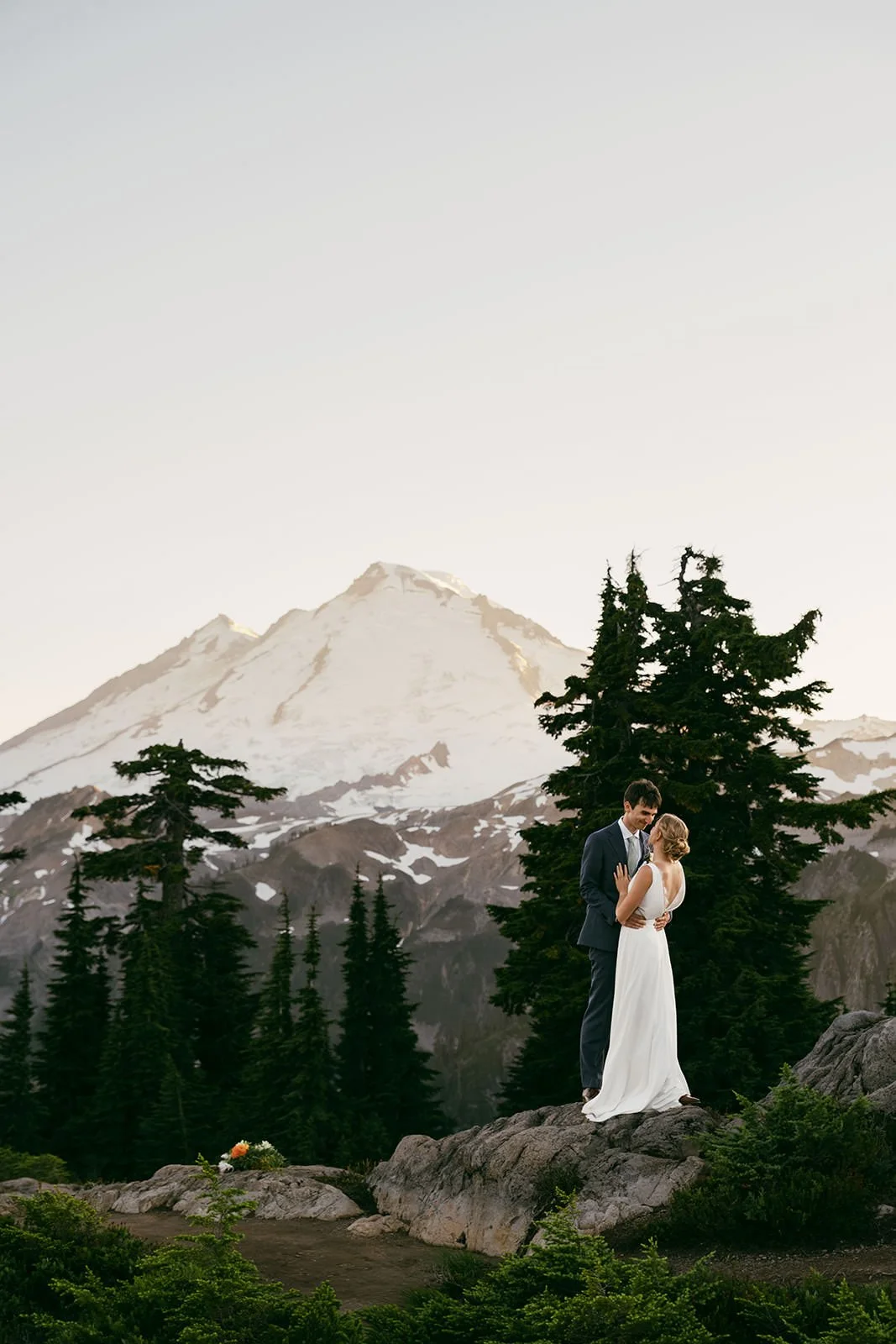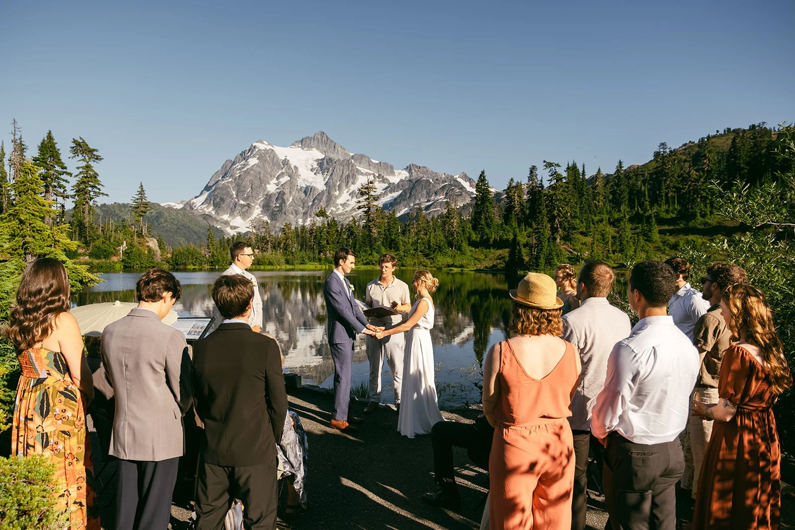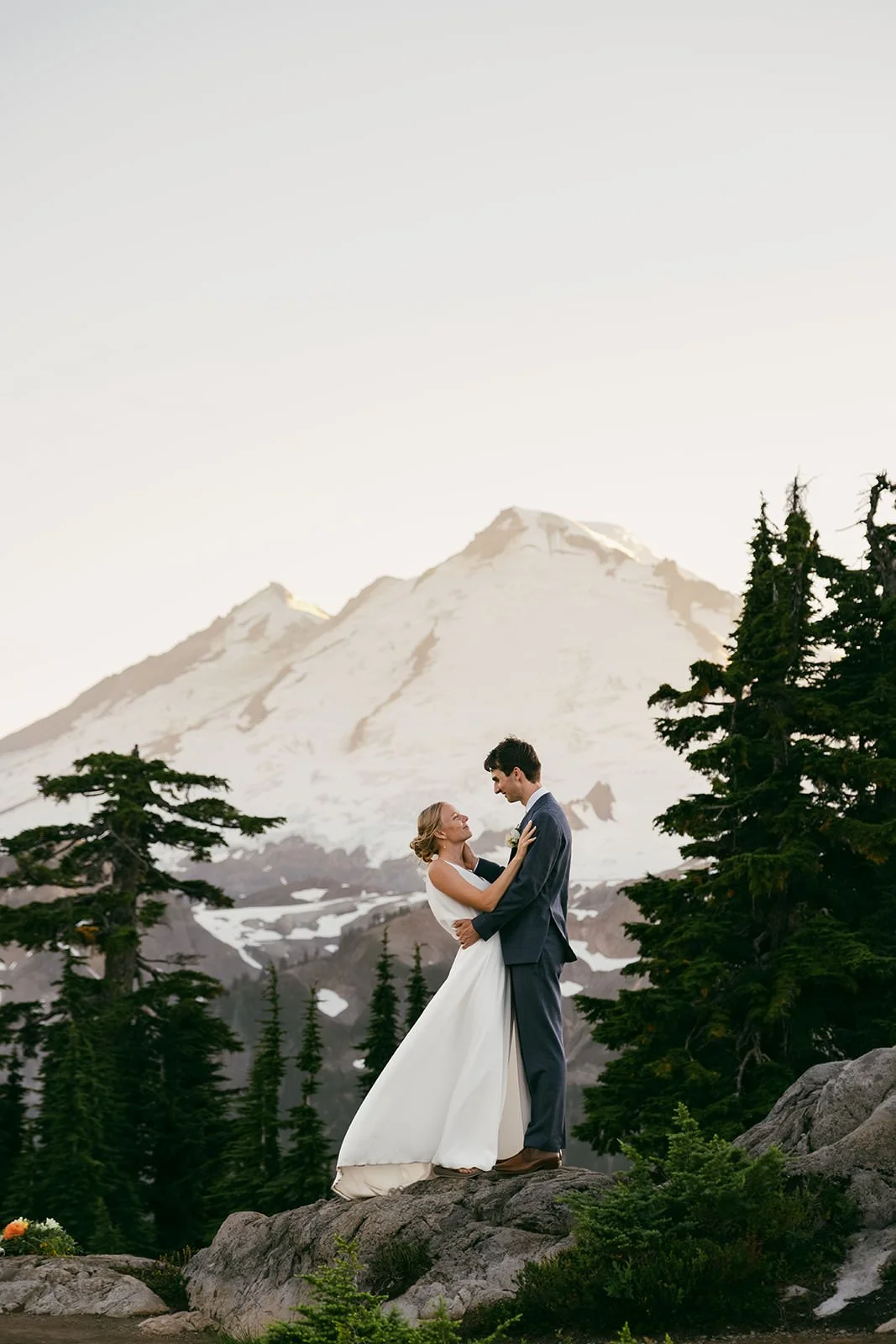 This wedding at Mount Baker was a beautiful family-only elopement ceremony at Picture Lake, followed by a just-us portrait adventure up the road at Artist Point. The backdrop of Baker and Shuksan is the perfect place to have a truly Pacific Northwest experience, someplace deserving of a real mountain love story! For Riley & Nicole, a couple of mountaineers who used to live in Bellingham, there was no better place to say “I do.”