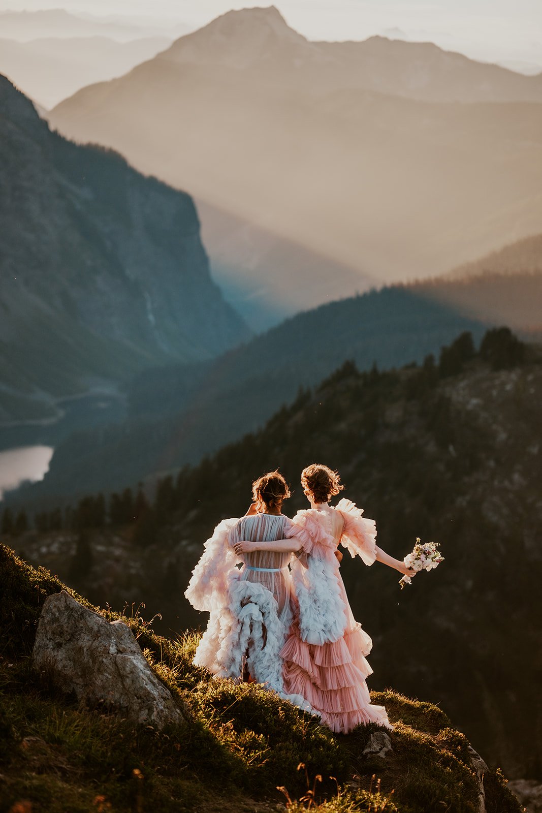 I can think of no better place to celebrate love than a stunning sunset view like the one pictured below! Piper & Taylor came together on one of the most BEAUTIFUL evenings I’ve ever witnessed in the North Cascades. We began with getting ready on the shore of Twin Lakes, then took The PNW Boat out for a relaxed row around one of the lakes. The hike up to Winchester Lookout was beautiful! Once at the lookout, we waited for the sun to hit the peaks just right for them to share their vows.